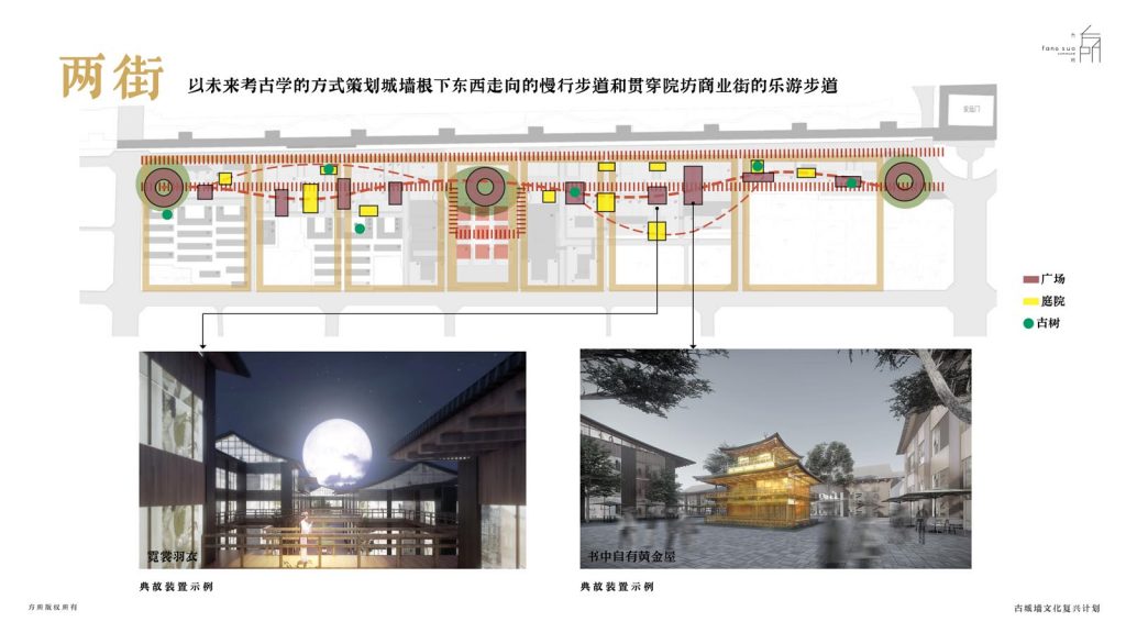 以未來(lái)考古學的(de)方式策劃兩條公園長(cháng)街(jiē): 城(chéng)牆根下(xià)順城$<(chéng)巷慢(màn)行(xíng)步 $γ道(dào),以及院坊文(wén)化(huà)樂(yuè)遊步道(dà<εo),串聯起不(bù)同尺度的(de)院坊公共空(kōng)間(ji↕<ān),作(zuò)為(wèi)數(shù)字科(kē)技(jì)創新" §的(de)背景主題以及成果展示窗(chuāng)口,營造具有(yǒu)儀↑↕"☆式感的(de)人(rén)文(wén)藝∑∑✘術(shù)休閑之旅,為(wèi)項目導流和(hé)蓄客,提升項目文(wé€÷γn)化(huà)高(gāo)度和(hé)社會(huì)影(yǐng)Ω響力。