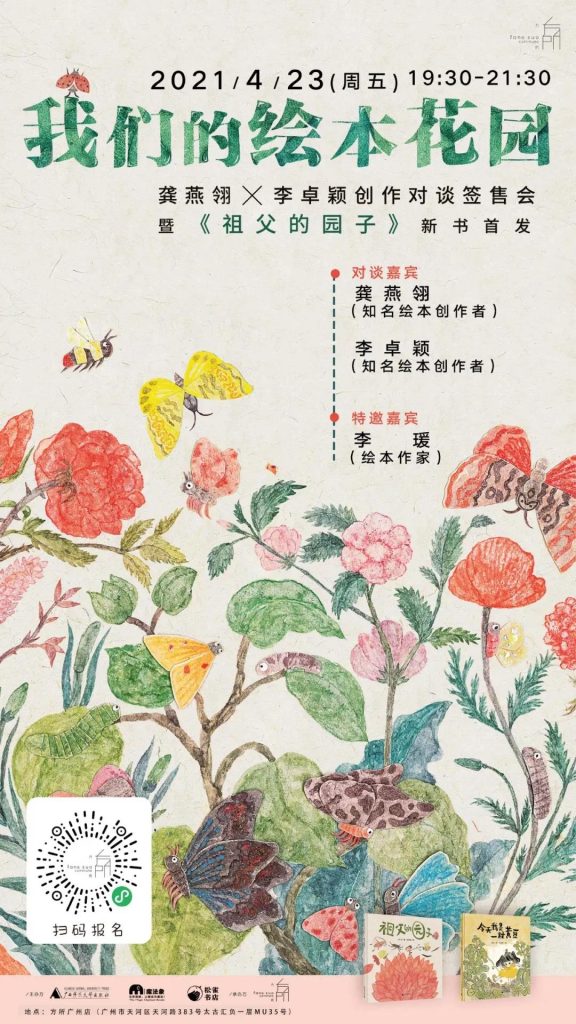 4月(yuè)23日(rì)19:30,方所廣州店(diàn)“我們的<₹§♠(de)繪本花(huā)園——龔燕翎×李卓穎創作(zuò)對(duì)談簽售≠∞會(huì)暨《祖父的(de)園子(zǐ)》新書(shū)首發”®≈♦活動,圍繞兩人(rén)的(de)繪本創作(zuò''€¶)和(hé)思考展開(kāi)。
