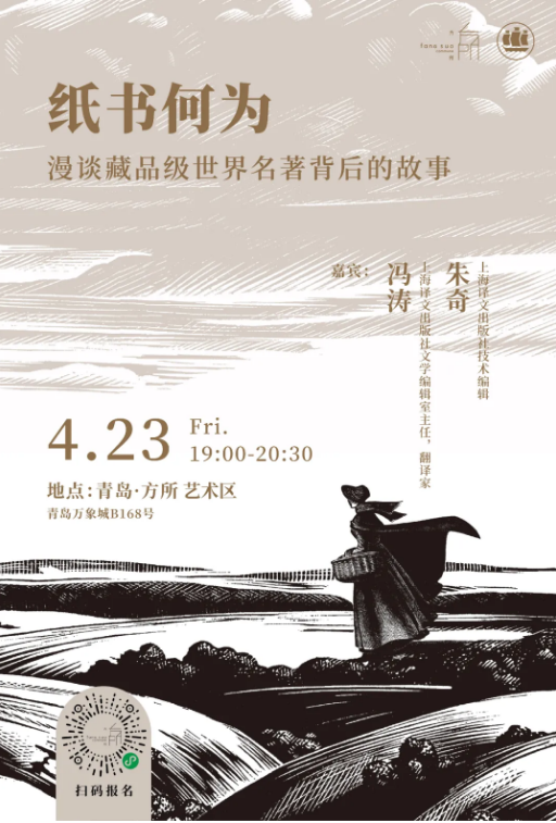 4月(yuè)23日(rì)19:00,方所青島店(diàn) ₽♥™,我們邀請(qǐng)到(dào)了(l•¶e)上(shàng)海(hǎi)譯文(wén)出版社文(wén)學室主任、翻譯♦→$∑家(jiā)、譯文(wén)插圖珍藏系列總策劃馮濤與上(shàng)海(∑‍hǎi)譯文(wén)出版社出版科(kē)科(kē)長(cháng)朱奇'©,和(hé)大(dà)家(jiā)一(yī)←★♣"起從(cóng)作(zuò)品內(nèi)✘δγ核、裝幀設計(jì)、制(zhì)作(zuò)工(gōnδ" ©g)藝等方面分(fēn)享這(zhè)套制(↓•πφzhì)作(zuò)精美(měi)的(de)藏¶"‌'品級譯文(wén)插圖珍藏系列叢書(shū)背後的(₩β¶‍de)故事(shì)。