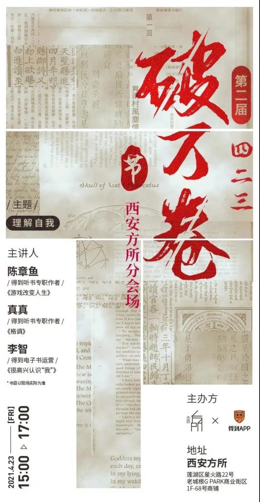 了(le)解詳情并參與請(qǐng)點擊:“理(lǐ)解自(zì)我”——得(de)到(dào)&€∑​第二屆四二三破萬卷節·西(xī)安方所分≥☆(fēn)會(huì)場(chǎng)