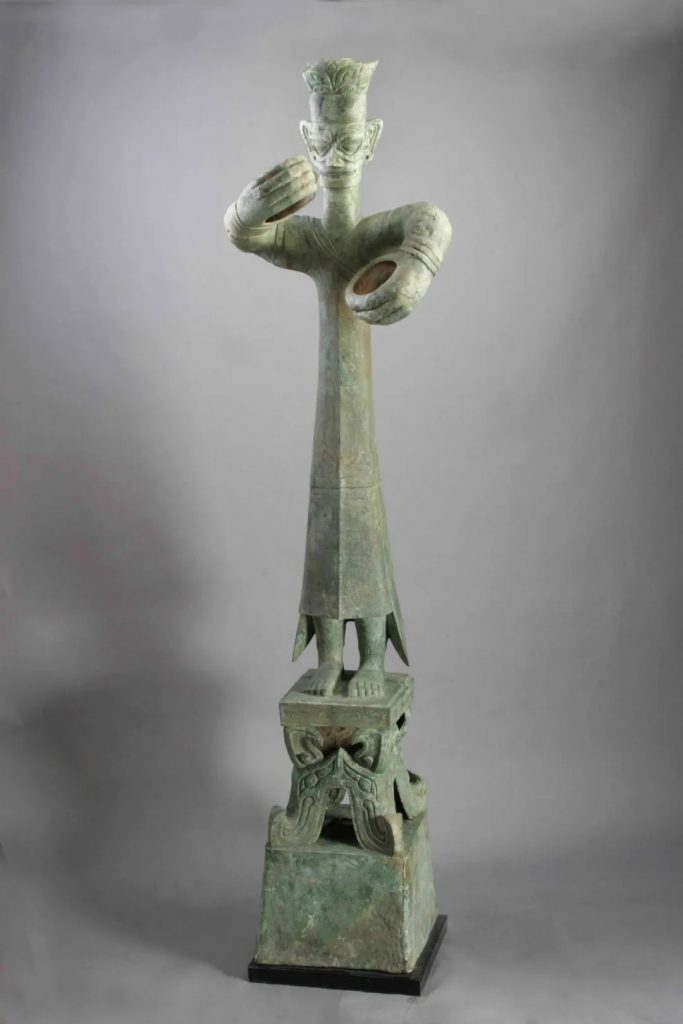 立人(rén)像由人(rén)像和(hé)底座兩部分(fēn)構成∞→,采用(yòng)分(fēn)段嵌鑄法鑄造而成,身(shēn)體(β✔ &tǐ)中空(kōng)。底座由座基、座腿"€Ω♠和(hé)座台面三部分(fēn)組成。座基為(wèi)梯形,素面沒有(yǒu™‌ε★)紋飾;座腿是(shì)四個(gè)相(xiàng)連的(de)怪獸頭;≠≥座台面為(wèi)方形,四周裝飾著(zhe)精美(měi)的(de)日(rì↔‌→)暈紋。總體(tǐ)來(lái)看(kàn)這(™ ↑zhè)個(gè)底座可(kě)以理(lǐ)解為(wèε>i)是(shì)一(yī)座神山(shān)或者神壇。